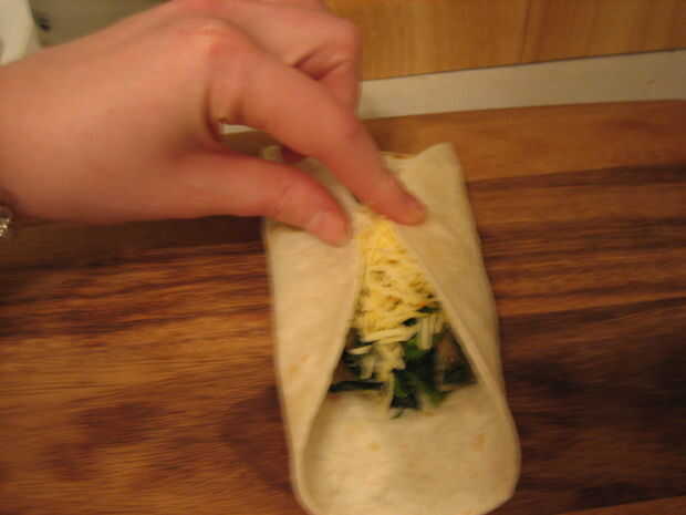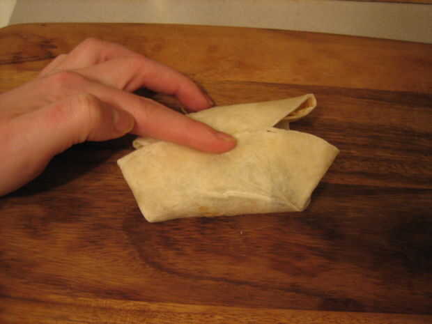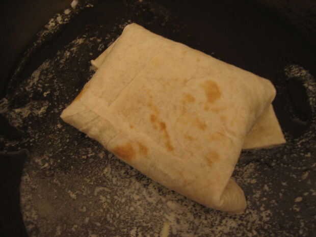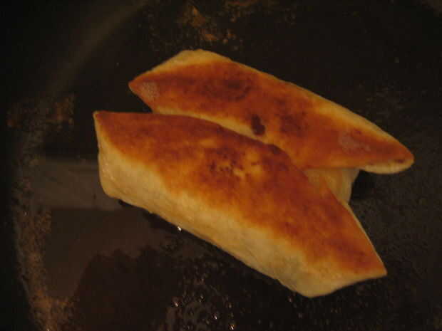 6. derretir una cucharada de mantequilla en la sartén y coloque el lado de la costura de tortilla doblada hacia abajo