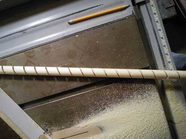 Espiral corte una clavija de madera utilizando una sierra de mesa (5 / 7 paso)