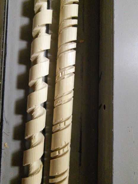 Espiral corte una clavija de madera utilizando una sierra de mesa (6 / 7 paso)