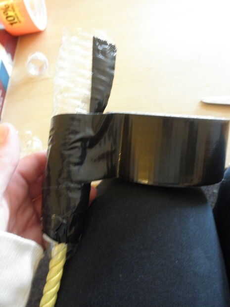 Paso 1: Paso uno Obtener algunos pato cinta y tijeras.Paso 2: Paso 2 Rodillo hacia fuera la cinta del pato sin embargo largo quieres que sea.Paso 3: Paso 3 Corte el pato cinta perfectamente estrecho.Paso 4: Paso 4 Corte casi a mitad de camino pero no
