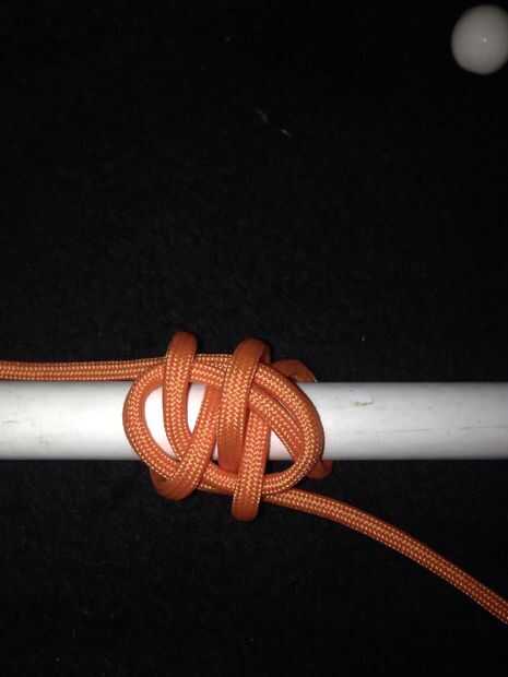 Cuerda paracord cuadradosPaso 1: Tomar en 57 de paracord. cortar por la mitad y sacar la cadena internaPaso 2: En una cuerda de encontrar el centro y atar un lazo en ella como esta.Paso 3: Sosteniendo el lazo hacia abajo coloque el otro cable en la s