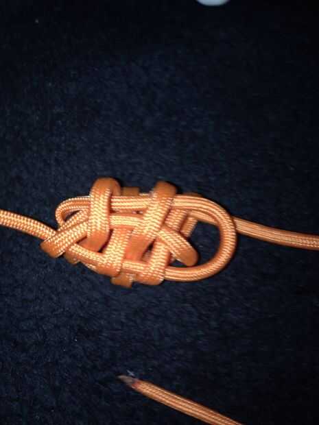 Un nudo de cuerda paracord de dos hebras