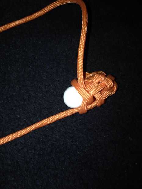 Meter la canica dentro de la red que acaba de hacer y luego apretar todas las cuerdas en el mármol hasta que haga una bola apretada. Corte el extremo de la cola y selle con un encendedor para evitar que se deshilache.