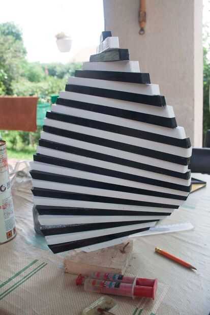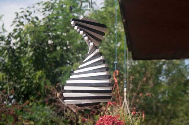 Ahora solo tienes que girar cada pieza en sentido horario (o sentido contrario, no importa) para que usted obtenga la forma de espiral. Colgar al aire libre y disfrutar! Utiliza sedal pesado y encontró que incluso la más leve brisa gire la espiral.