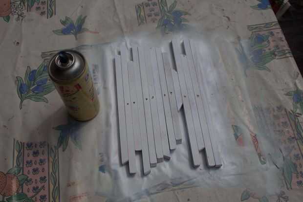 Ahora, la pintura: básicamente se puede utilizar cualquier color, utilicé lo que tenía en casa. Pintura de aerosol y pintura de esmalte. Lo importante es dejarla secar completamente antes de poner todas las piezas sobre una varilla.