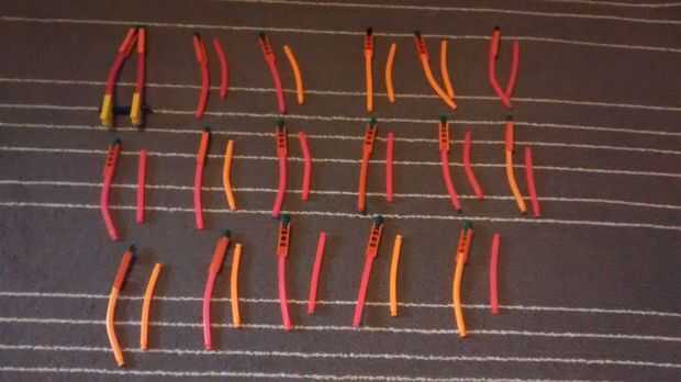 Aquí están las instrucciones para mi elemento brazo gotero invertido. Este elemento fue creado cuando trataba de poner bolas en nuevas localizaciones en un elemento que estaba diseñando que no funcionaba. Abajo está la lista de piezas:BARRAS:Verde: 3
