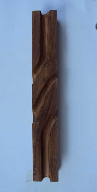 Con el Cincel plano y martillo, hacer v-en forma de cuñas en la pieza de madera. Después de esto, con el cincel redondo del cincel. El punto donde el espiral se mueve de una cara a otra debe hacerse con mucho cuidado como el radio de curvatura puede salir de control.