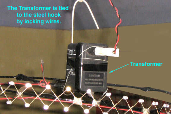 El transformador está vinculado con el gancho de acero mediante el bloqueo de los cables.