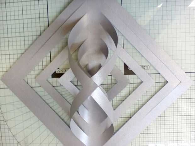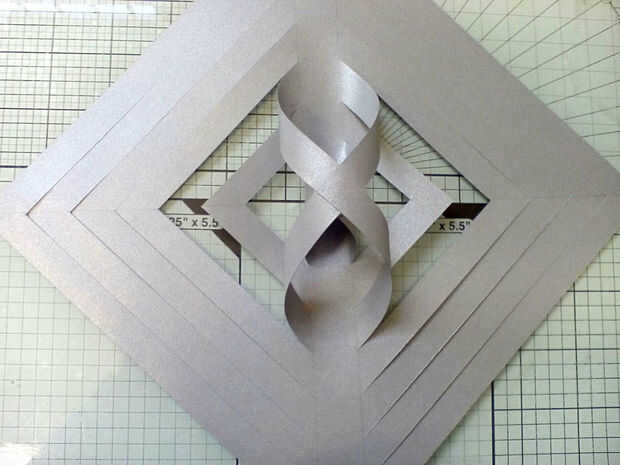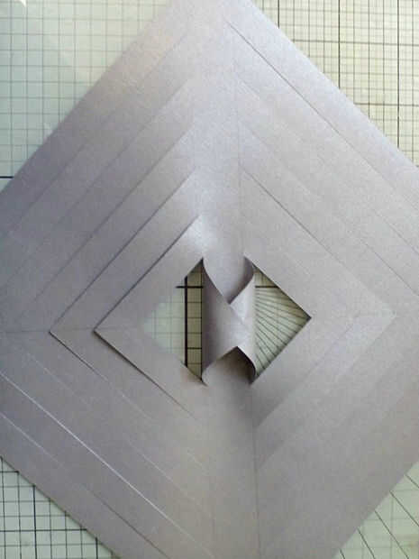 Omitir el siguiente conjunto de aletas, pero inclinarse el tercer par concéntrico de la misma manera, otra vez a pegar donde se superponen. Luego saltar un juego más y repetir con el final par concéntrico.