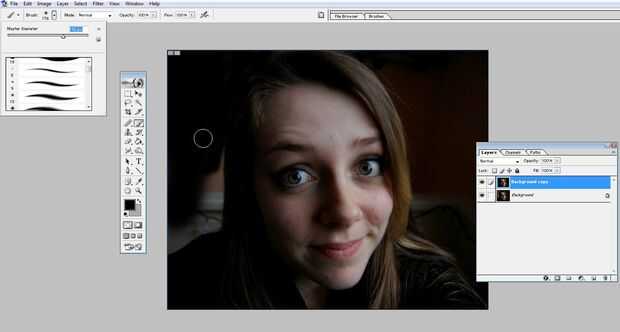 Para ello: seleccionar un cepillo de plumas y bastante grande (para mi la imagen se trata de 176 pixeles.) Cuando más cerca de la cabeza usted querrá utilizar un tamaño de pincel más pequeño y tal vez cambiar la opacidad en caso de que algo va mal.