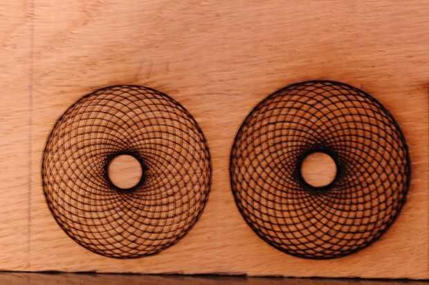 Cuando sólo está grabado, no tiene que preocuparse tanto sobre pequeños pedazos minúsculos. Para este paso, me ha pasado a través de alguna madera buena. El espirógrafo que generé fue algo complicado, así que lo probé de dos maneras diferentes: