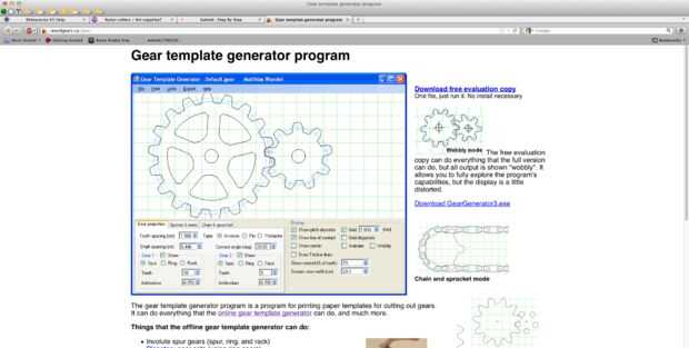 He descargado generador de engranajes (http://woodgears.ca/gear/) por 26 $ hacerlo verdaderamente fácil. Dibuja engranajes con cualquier número de dientes, dentro o hacia fuera. Puede Agregar radios en cualquier número, y salidas en .dxf, un formato útil. También es muy divertido y muy fácil de jugar con.