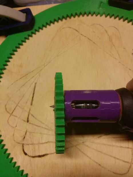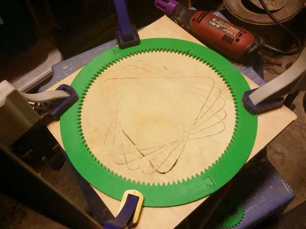 Hice mi prueba inicial en madera contrachapada y estaba trabajando bien, pero mi granito de arena fue opacar bastante rápidamente. Te recomiendo poner una marca en el seguidor que se alinea con la pista de cuatro donde iniciar-si tienes que parar y empezar de nuevo, que necesita para empezar en el mismo lugar con el fin de asegurarse de que su patrón de espirógrafo corte alinea con sí mismo.