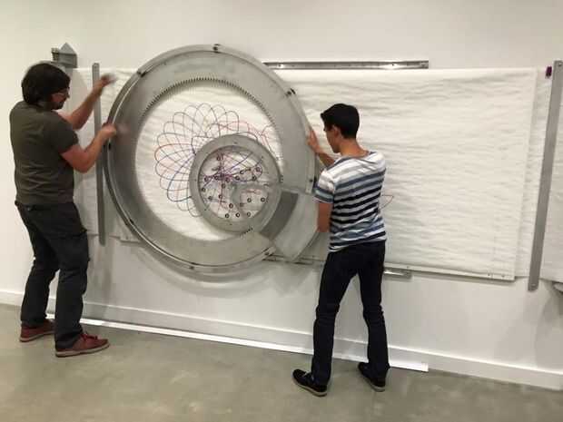 Este concepto de la pared que montada espirógrafo fue concebido por Pinterest, mientras que los detalles de diseño, ingeniería e instalación se quedaron con nosotros. En su sede en San Francisco podrá disfrutar de la pieza terminada!