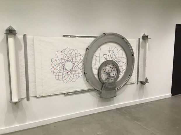 ¿Amor espirógrafo, pero quiero empezar hacer arte de pared tamaño cartel en lugar de pequeños dibujitos? Mira no más - esto es un 5' diámetro versión que se construye para colgar en una pared. Además el diámetro más grande, este espirógrafo está construido sobre una pista deslizante e incluye un mecanismo de enrollado de papel de carnicero para que pueda crear fácilmente nuevas superficies de escritura para disfrutar!