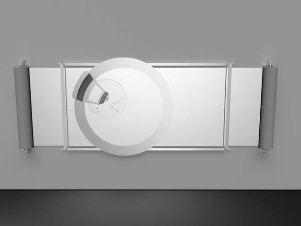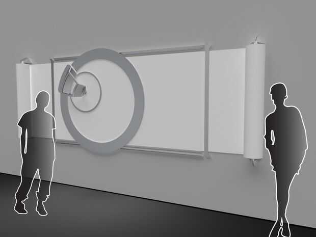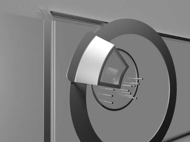 Fue deseado para mantener limpio el diseño en general - minimizar expuestos sujetadores. Además, hemos querido mantener el enfoque en la obra de arte, en lugar de la pieza, así que decidimos diseñar con acrílico grueso incrustaciones donde posible en lugar de opacos materiales como metal y madera. Con el fin de simplificar los requisitos de instalación y reducir el peso de la pieza, todos los demás componentes fueron diseñados en aluminio.