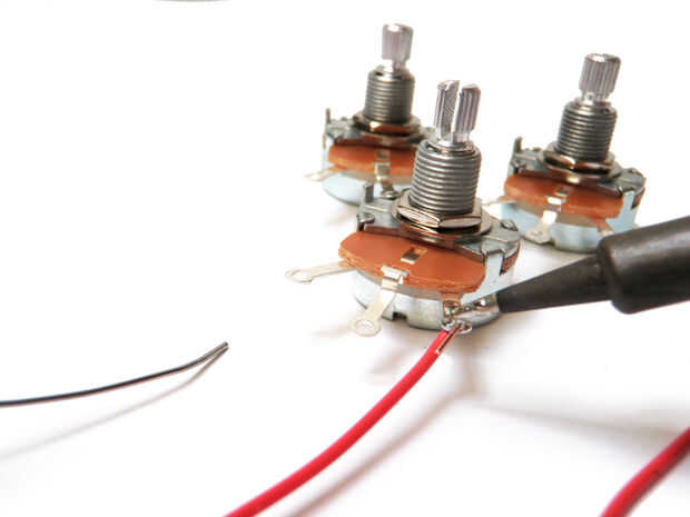 Suelde los cables rojos del motor a las terminales del centro de cada potenciómetro, que es un motor a un potenciómetro.
