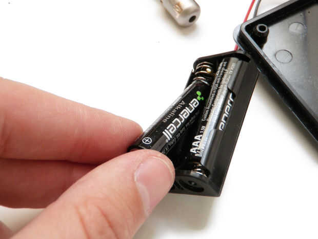 Pilas en el portapilas. Ahora podrá convertir todo y apagar el interruptor.