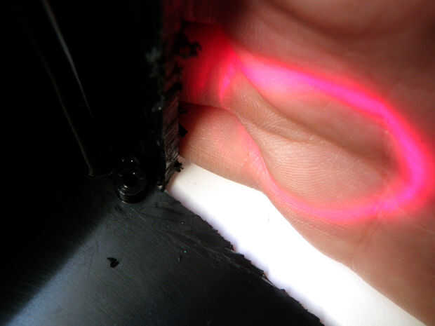 Pegar su mano o un pedazo de papel delante del orificio en el lado de la caja. Giratorio de los motores y el láser hasta que la imagen aparezca centrada.