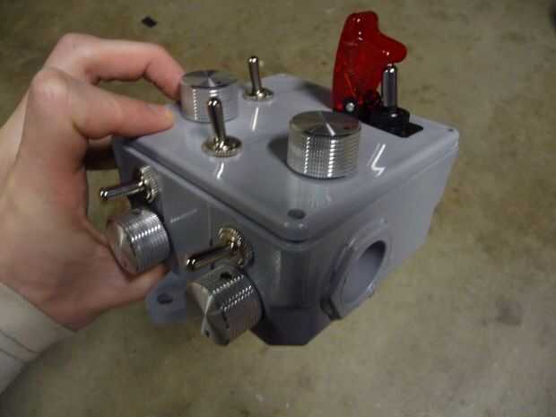 Este interruptor controla el poder de los cuatro interruptores de encendido/apagado y actúa como un interruptor de matar en caso de tenga que desactivar todo rápidamente. Siendo realistas, el interruptor que tengo es demasiado completa y gran tamaño para este proyecto, pero parecía un divertido accesorio para utilizar. Una vez más, ver las fotos por donde atraviesa el interruptor. Tengo algunos comentarios sobre lo parece que tiene para activar una bomba.