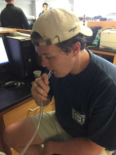 Este espirómetro obras relacionadas con un valor de capacitancia cambiante capacidad pulmonar. El condensador está inicialmente totalmente sumergido en agua, pero como soplar en el tubo, el aire de los pulmones llena la parte superior del recipiente y hace que se aumente. Como en este caso, el condensador gradualmente menos cae, por lo tanto cambiar su valor de capacitancia. Utilizando la función de transferencia de la baja pasar el filtro con frecuencia de entrada saber y valores de resistencia, podemos determinar la capacitancia del circuito. El circuito entonces se puede calibrar con volúmenes conocidos aire relacionarse con capacitancia capacidad pulmonar. Tomar varios puntos de datos de volumen de aire y capacitancia, les parcela y ajuste una línea. Cuando la ecuación de esta línea de ajuste se incorpora en el programa de vista de laboratorio, el circuito se convierte en un transductor de volumen pulmonar en tiempo real!
