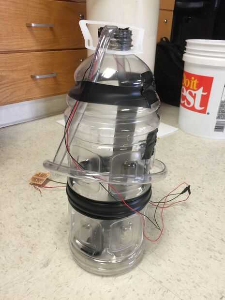 Además, el buque debe contener un condensador que permanece en una posición fija y es paralela a la longitud de la botella. Esto es básicamente para conseguir una medida exacta. También es importante para asegurarse de que los cables y las conexiones del condensador estén completamente selladas del agua para que no corto.