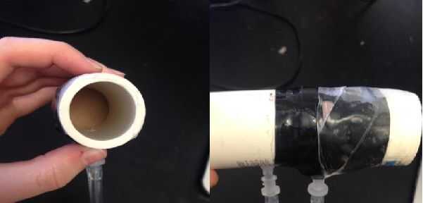 Primero tendrá que realizar dos agujeros en los dos tubos de PVC que se conectará a la tubería del vinilo. Con cuidado se puede hacer usando un taladro y los agujeros deben ser relativamente cerca del borde de sus respectivos tubos de PVC (se llame a estos número de lados 2). Usted tendrá que asegurar el tubo de vinilo usando cinta o algún otro adhesivo para este tipo de plástico.