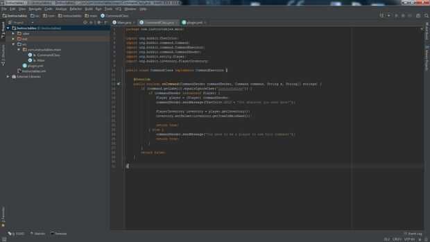 } else { commandSender.sendMessage("You need to be a player to use this command!"); return true; } Con las llaves dando vuelta las cosas en nuestra función sendMessage y devolver true . Sólo podemos añadir una declaración más después de esa declaración si hemos añadido, diciendo los commandSender que el comando puede ser utilizado por un jugador (no olvides devolver true, como todavía se reconoce el comando), que puede hacerse:
