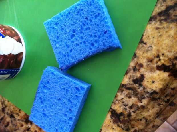 he encontrado que la manera más fácil de cortar la esponja es tomar un cuchillo de sierra y cortar hasta la mitad. A continuación tome las tijeras para cortar la parte de la esponja que todavía se une.