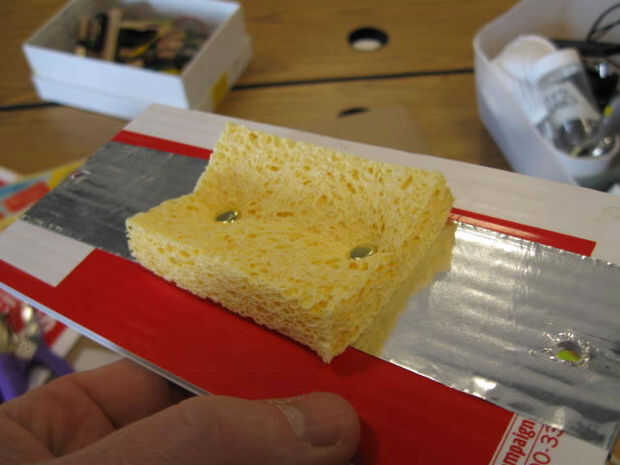 La esponja debe estar en su lugar. Querrá volver hacia abajo, apretado contra la hoja.