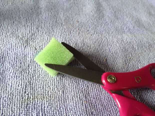 Tomar una esponja o un trozo de espuma y cortar al tamaño de la uña