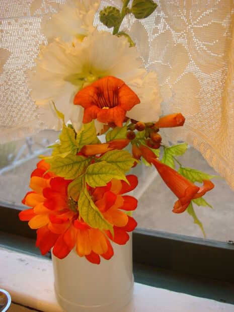 En la foto es la esponja y una botella de vinagre que pintados de blanco y cortar la parte superior justo por encima de las líneas decorativas y adornos ha añadido. Pincha un agujero en ella así que si quería podía colocar una flor. Yo también he reutilizado una botella de la bomba llenando la botella con agua cerca de 1 pulgada por debajo de la línea de líquido. Luego agregar jabón a la línea y sacudarieron para arriba. Funciona muy bien y me ahorra dinero por volver a llenarlo yo con jabón menos costoso. Estos son grandes en el baño de champú y jabón de mano.