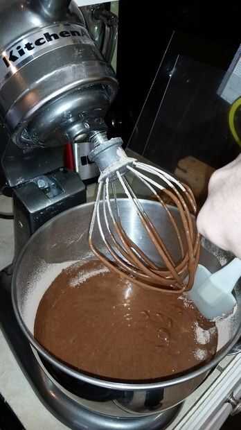 5. Una vez todos los huevos se baten, empezar a agregar el resto de los ingredientes húmedos, haciendo que todos estén a temperatura ambiente o en nevera antes de añadirlos (para que no cocinar los huevos).