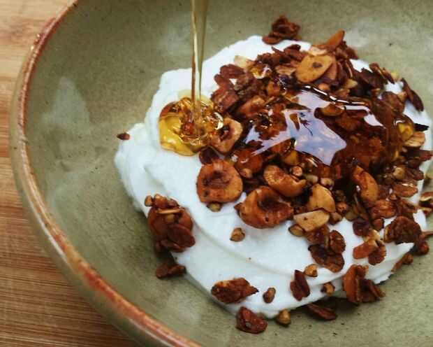 Esta mañana, hice esta fácil de hacer sin aceite granola! Usted puede cambiar las tuercas y utilice cualquier tuercas que tiene en la casa, pero mantienen las cantidades. Va a encantar también! Me gusta servir a la granola, todavía caliente, con un b