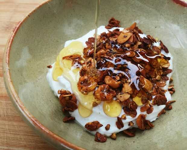 nos estamos yendo para hacer granola empapando todos los ingredientes juntos, dejando que el ácido láctico bacterias fermentan todo, entonces lo deshidratación en lugar de hornearla.Las bacterias lácticas son un grupo de bacterias como el género Lact