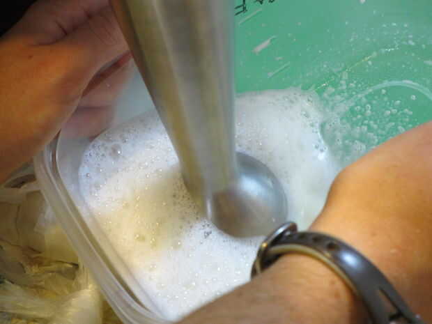 2. mezcla con licuadora hasta que haya una capa de espuma sobre el líquido.