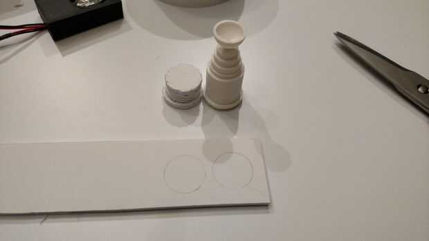 La siguiente sección del trofeo es el más alto y se requieren 4 o 5 círculo corte salidas del mismo tamaño. Empecé por 3 círculos de dibujo, corte hacia fuera y ver si eran tan altos ya que necesitaba.