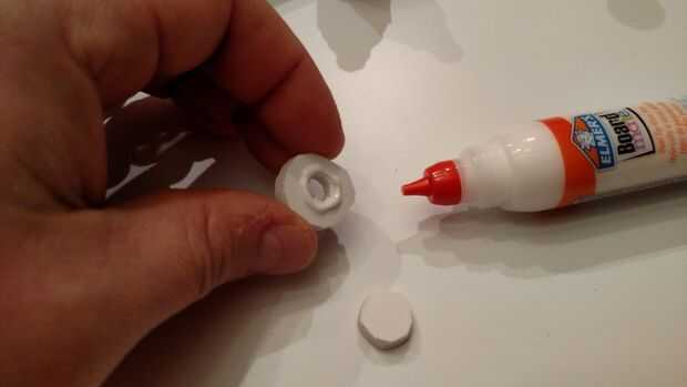 Una vez que las formas de cortar, aplique una pequeña cantidad de pegamento a la pieza de la rosquilla en forma de cerca el interior hueco.