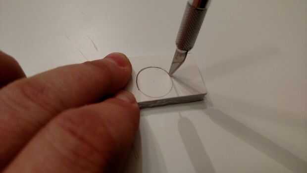 Tip: Para los círculos más pequeños, he utilizado un cuchillo X-acto y suavemente mueve el cuchillo hacia arriba y hacia abajo como una sierra pequeña para cortar los círculos, y luego recortar con el exceso de material con las tijeras.