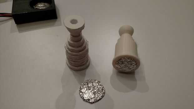 El último paso es añadir un disco de papel de aluminio en el fondo del trofeo. Esto conectará los dos terminales en el stand de trofeo cuando el trofeo se coloca en el soporte.