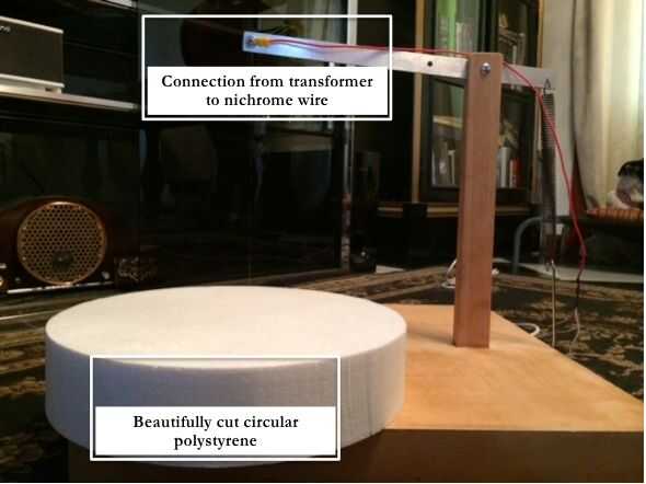 Yo estaba ocupándose afanosamente mi propio negocio cuando mi pareja me preguntó si podía hacer un cortador de alambre caliente porque quería algún poliestireno para algunas decoraciones de Navidad de la forma. Creo que su idea era que te pegas un cable en la red y voilá tienes un cortador de alambre caliente. Así que después de mucha investigación aquí y en la red improvisó este.