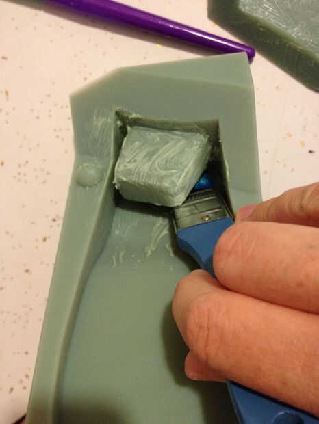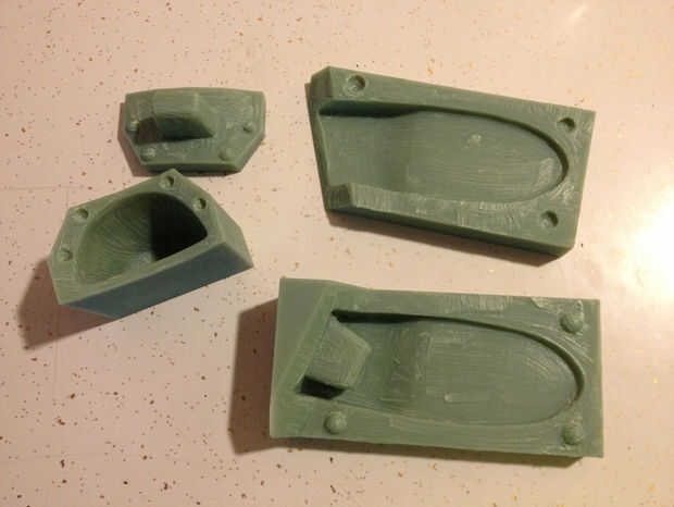 Lanzamiento de molde puede pasar antes o después es todo para arriba, pero no dejes que seque demasiado o pierde parte de su eficacia. Si está usando un lanzamiento de molde comercial, especialmente formulado, puede venir en una lata de aerosol en cuyo caso la pulverización en es bastante sencillo. Me encontré con cera para autos que funcionan bastante bien para la combinación de poliuretano y plástico de ABS-como las impresoras de Objet Connex que mis moldes son de (por alguna razón un lanzamiento de silicona spray, que ha utilizado con éxito en muchos otros proyectos, no tan bien en este caso). Cepille en con un pincel, teniendo cuidado de hacerlo bien en cualquier voladizos en el molde. También es una buena idea poner desmoldante en las zonas del molde que encajan juntos y en las claves de registro. Si la espuma se desborda, va a tocar estas áreas, y es agradable si no se pega.