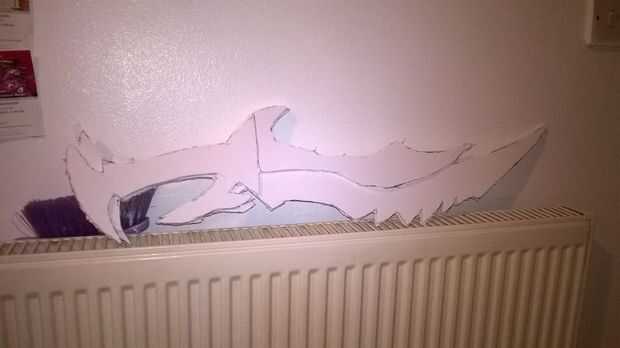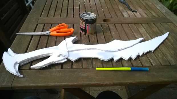 Hablando de la cola, cuando corte las piezas de espuma con un cuchillo, se deslizó y cortar una de las partes del mango, el brillo negro esmalte que usé era pegajosa para mantenerlo en su lugar, y todavía está atascado de esa pintura.