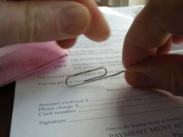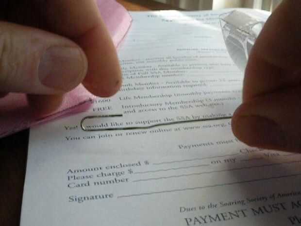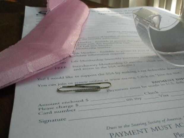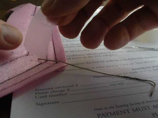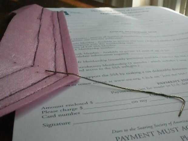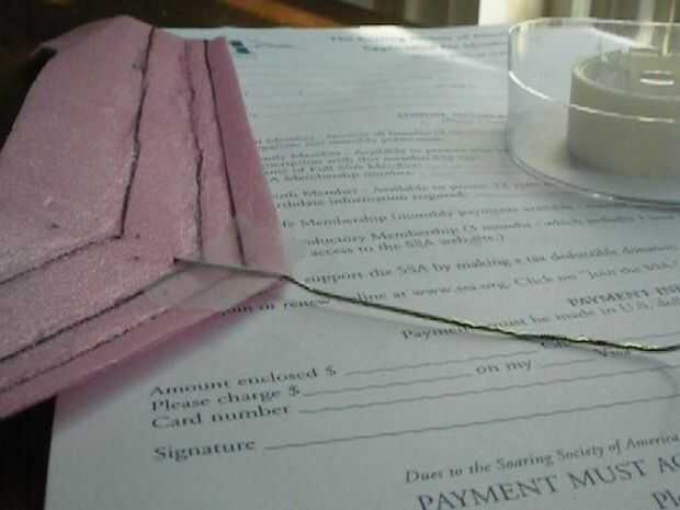 Un clip de papel se endereza hacia fuera para hacer un lastre hacia adelante a la nariz. Este peso permite ajuste del peso y balance:
