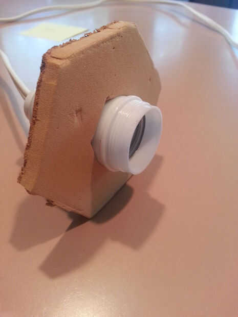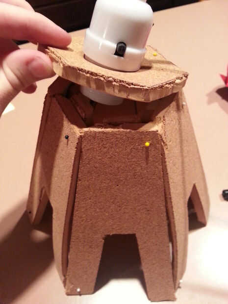 A continuación corté una pieza hexagonal hasta que actúan como una tapa de la bombilla y el casquillo. Tuve que cortar un círculo que encajaría perfectamente con la pieza de toma. La tapa entonces fue conectada con los pernos uno en cada pieza.