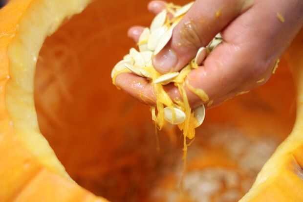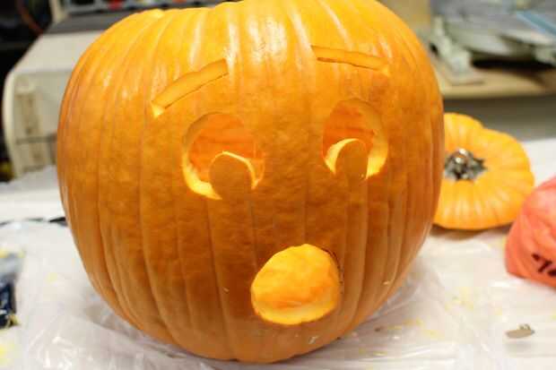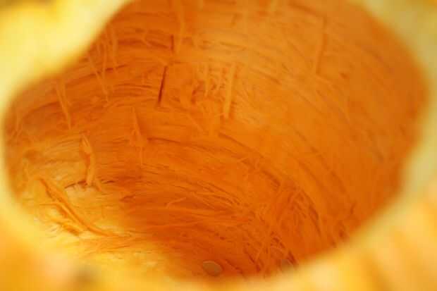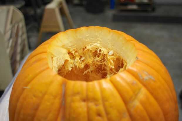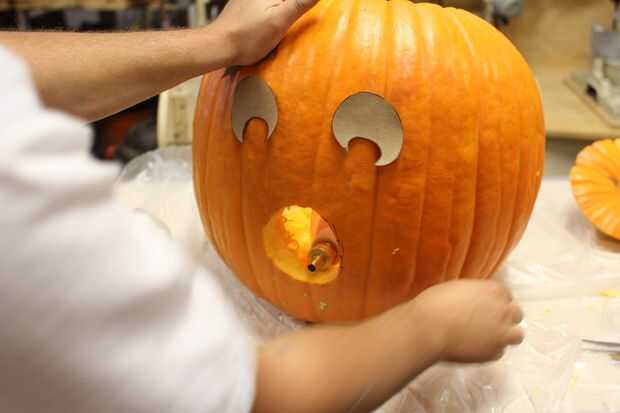 Una vez que ha dibujado la cara a la calabaza, trocear.
