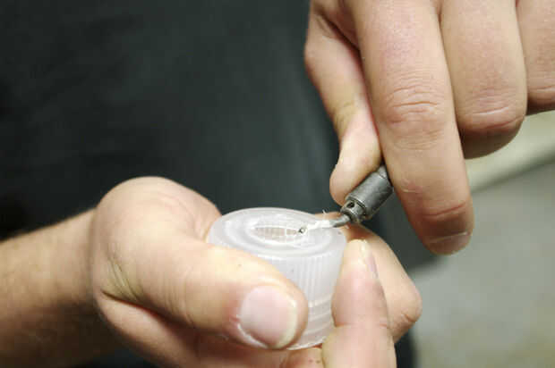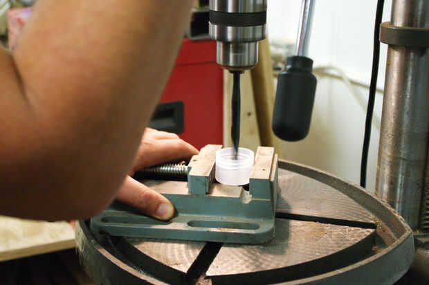 Taladro 3/4' "agujero en la parte superior de la tapa de cada frasco de 250ml.
