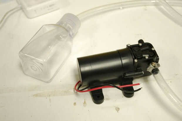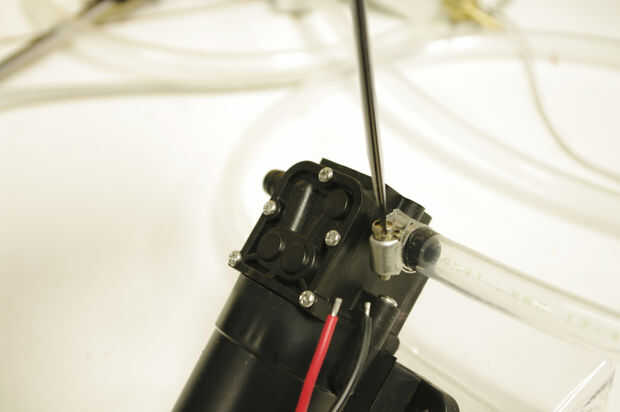 Conecte el otro extremo de la manguera en la botella a la entrada de la bomba y fijarla con una abrazadera.