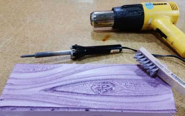 Soldador: Esto derretirá la espuma y derretir rápidamente, necesita una mano firme y rápida mientras dibuja. Ideal para texturas profundas y usted puede utilizarlo como dibujo con un lápiz.