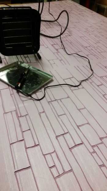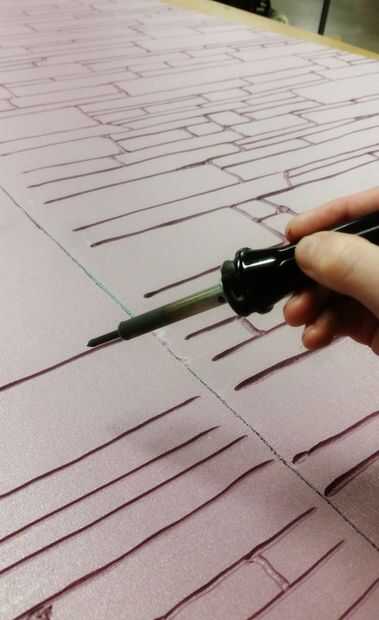 Después de que han formado sus piedras con la pistola de calor, se dará cuenta de los espacios entre los bloques se ha vuelto un poco aplanado hacia fuera y deformado. Volví sobre todas mis líneas con el soldador nuevamente a definir las piedras y añadir alguna dimensión interesante. Usted puede comparar las dos imágenes anteriores.
